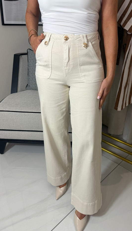 Sold outCream Gold Button Jeans