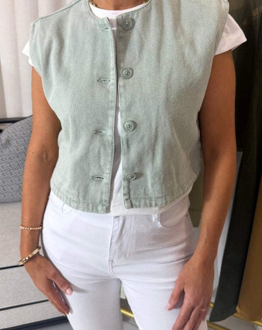 Green Denim Waistcoat