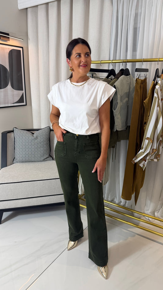 Dark Green Front Pocket Jeans