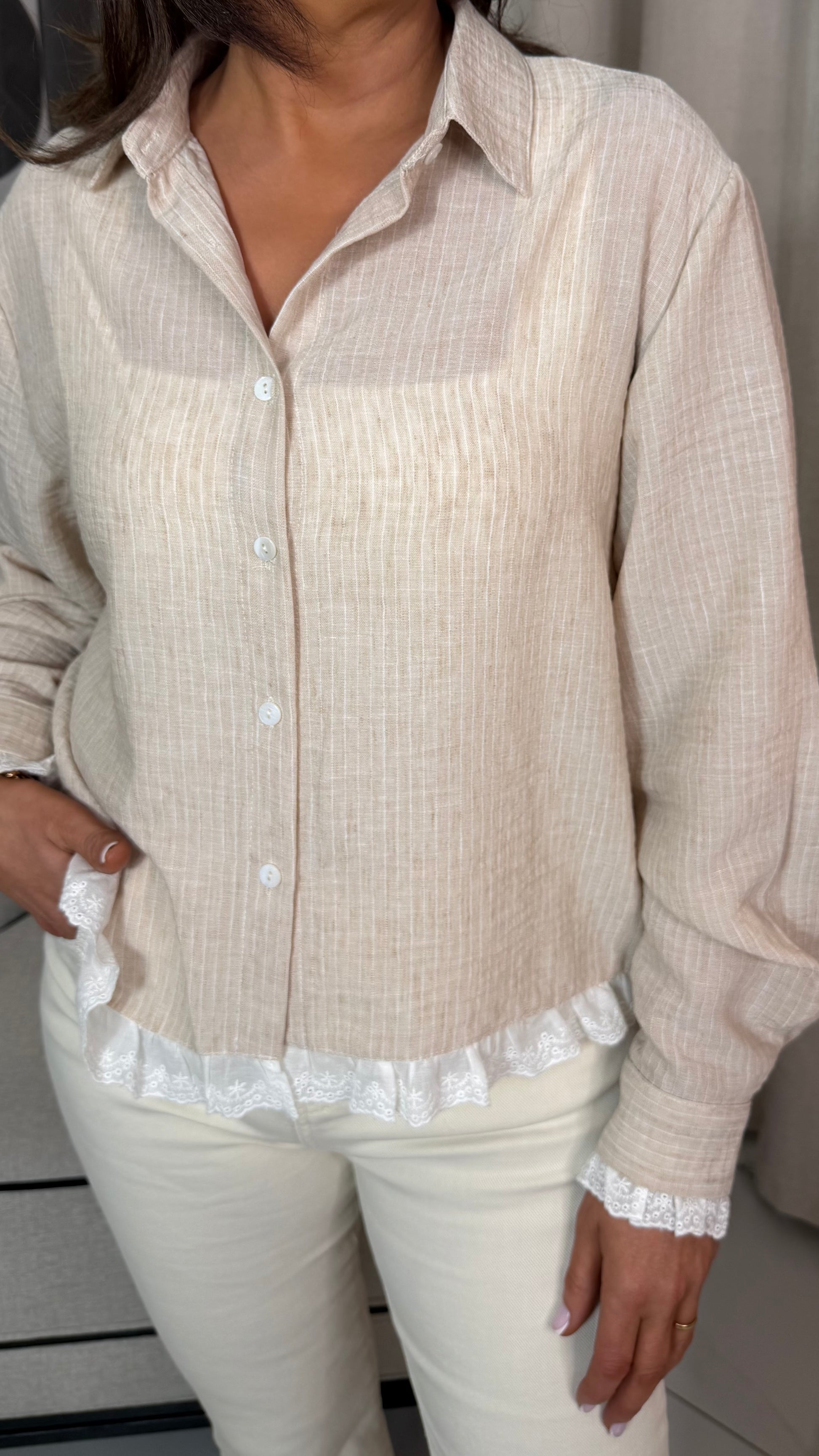 Beige & Lace Trim Blouse